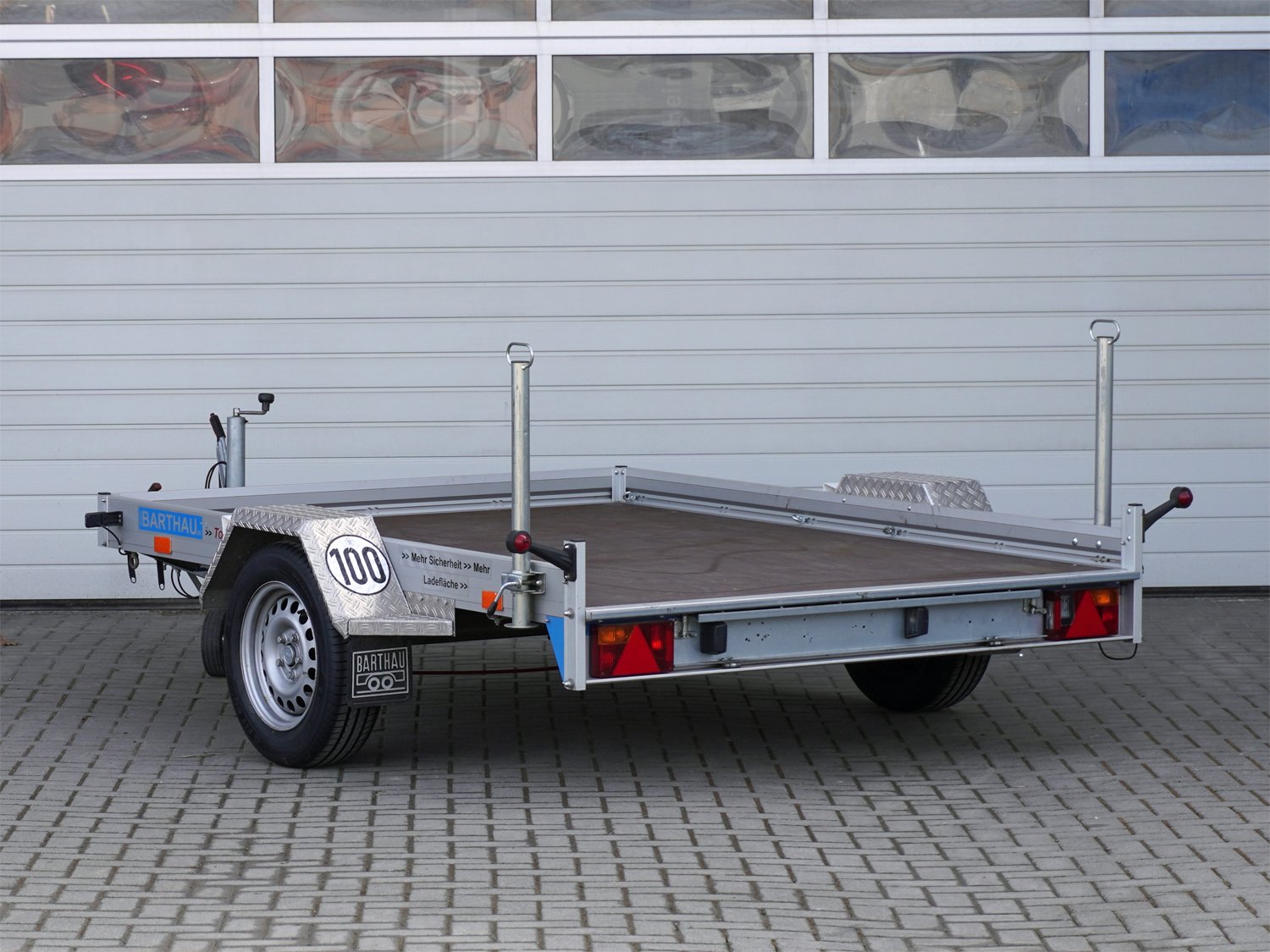 Der Barthau QM1351 ist ein hochwertiger Plattform-Anhänger mit Aluminium-Auffahrrampen, die eine griffige Lauffläche und seitlichen Schutzrand bieten. Dank der vollkommen geschraubten, verwindungsfreien Aluminiumrahmen-Konstruktion aus hochfester Speziallegierung bleibt der Anhänger besonders stabil.