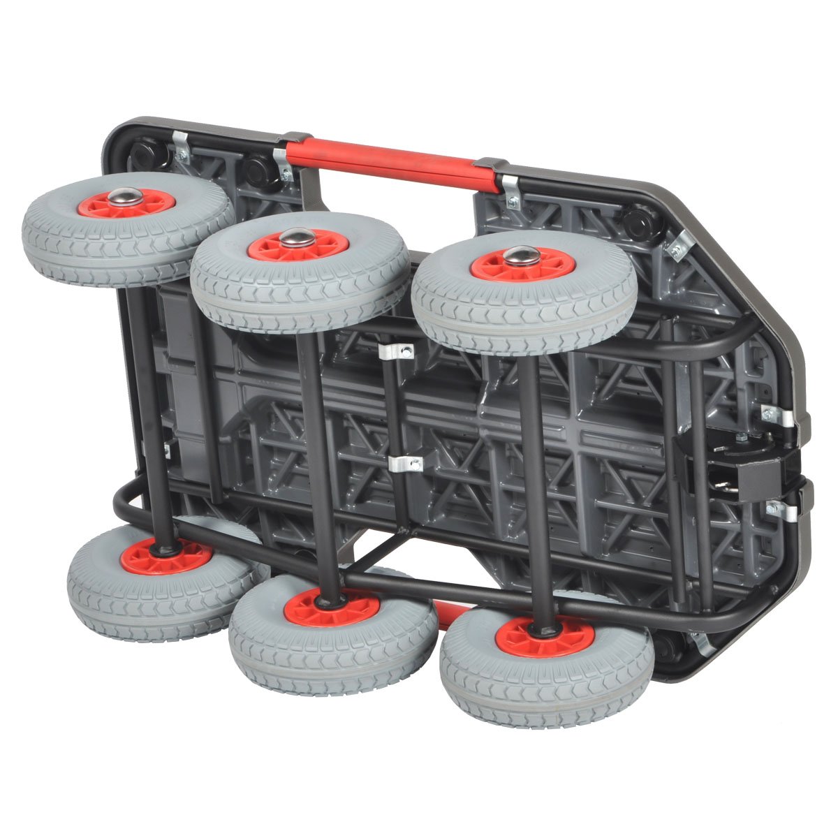 Bei diesem Transportgerät können Sie zwischen zwei Reifenarten wählen: Vollgummireifen oder pneumatische Reifen, abhängig von Ihren Einsatzbedingungen.