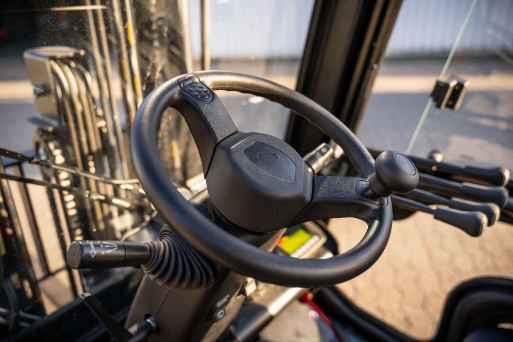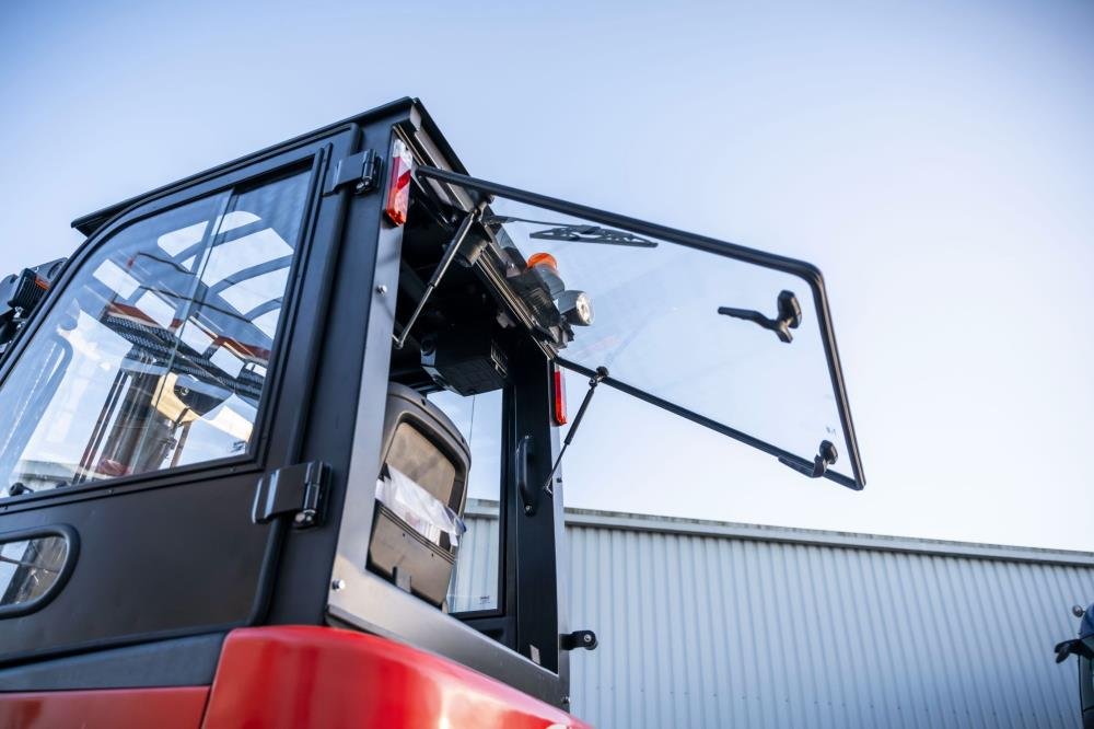 Die geräumige Kabine sorgt für eine komfortable Arbeitsposition. Dank der hohen Leistung und der Schnellladefunktion ist der Stapler eine effiziente Alternative zu thermischen Gegengewichtsstaplern.