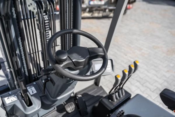Dank präziser Lenkung lässt sich der Stapler sehr genau manövrieren. Zusätzlich ist die Lenkachse mit großem Lenkwinkel ausgestattet, wodurch der Wendekreis deutlich reduziert wird – ideal für Be- und Entladevorgänge auf engem Raum.