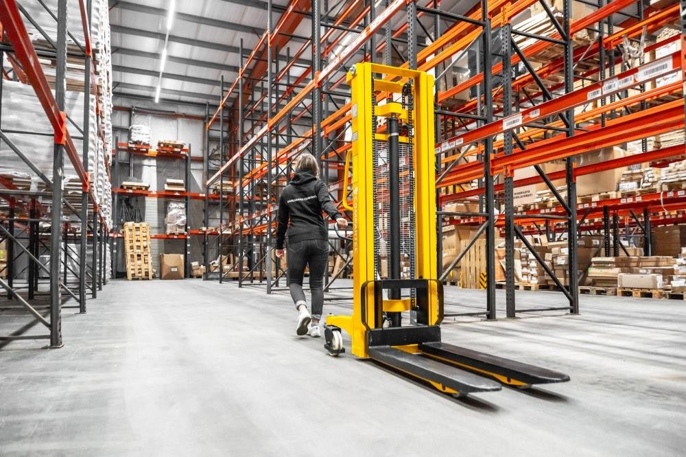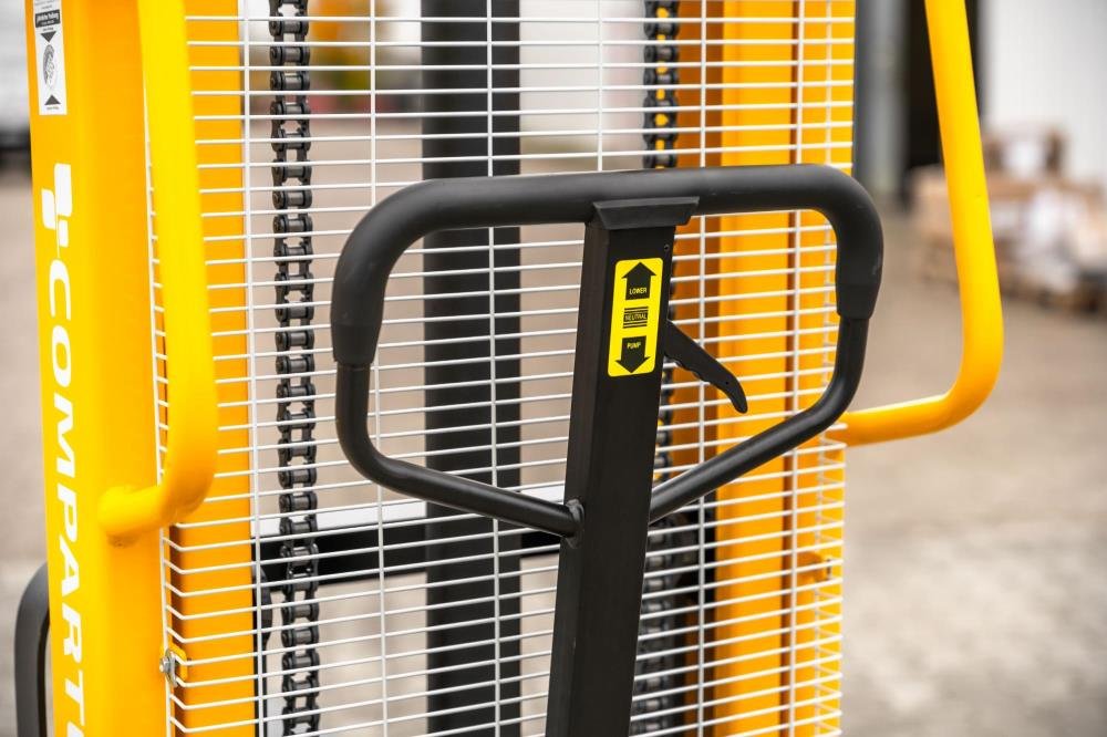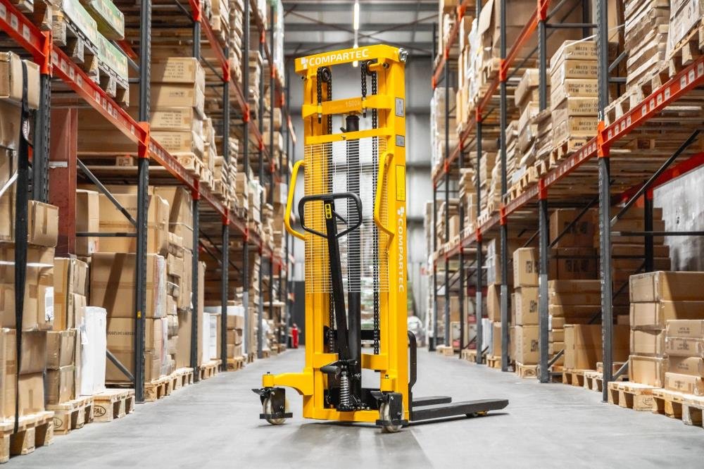 Der manuelle Stapler BASIC von Companyshop eignet sich ideal für den Transport palettierter Waren in Lagerhallen, Fabriken und Regalsystemen. Mit einer Tragfähigkeit von bis zu 1500 kg und einer Hubhöhe von bis zu 3000 mm übernimmt der manuelle Stapler ähnliche Aufgaben wie ein Gabelstapler. Die fuß- und handbetätigte Vorrichtung erleichtert das Aufnehmen, Bewegen und Absetzen der Lasten, selbst in höheren Regalebenen.