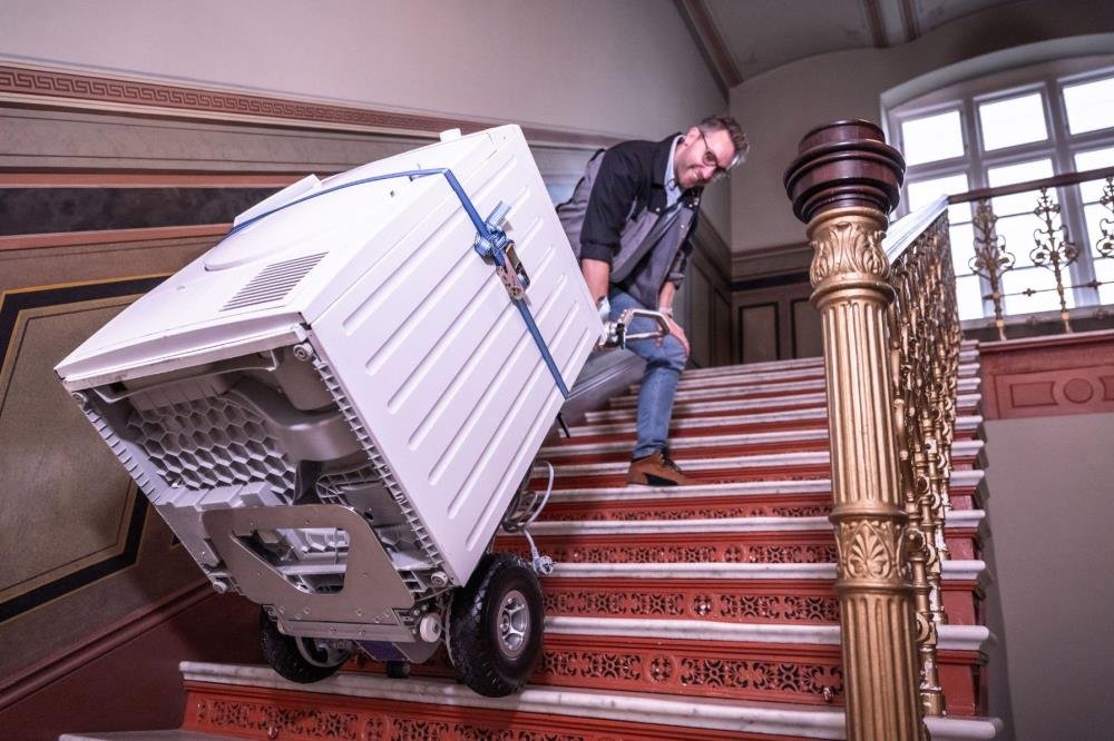 Der elektrische Treppensteiger PRO von COMPARTEC ist optimal geeignet, um alle Arten von Lasten bis zu 200 kg sowohl auf ebenem Gelände als auch über Treppen zu transportieren. Der integrierte automatische Treppensteiger ermöglicht das mühelose Überwinden von Stufen, Podesten und Treppen. Damit können selbst sperrige Güter wie Kühlschränke, Herde, Teppichrollen oder Kopierer problemlos in höhere Etagen transportiert werden.