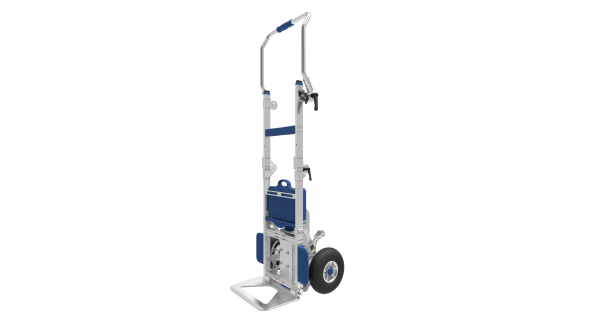 Dieses Modell ist klappbar, wodurch die Gesamthöhe deutlich reduziert werden kann. Zusammengeklappt passt der Treppensteiger problemlos in einen Transporter oder PKW.