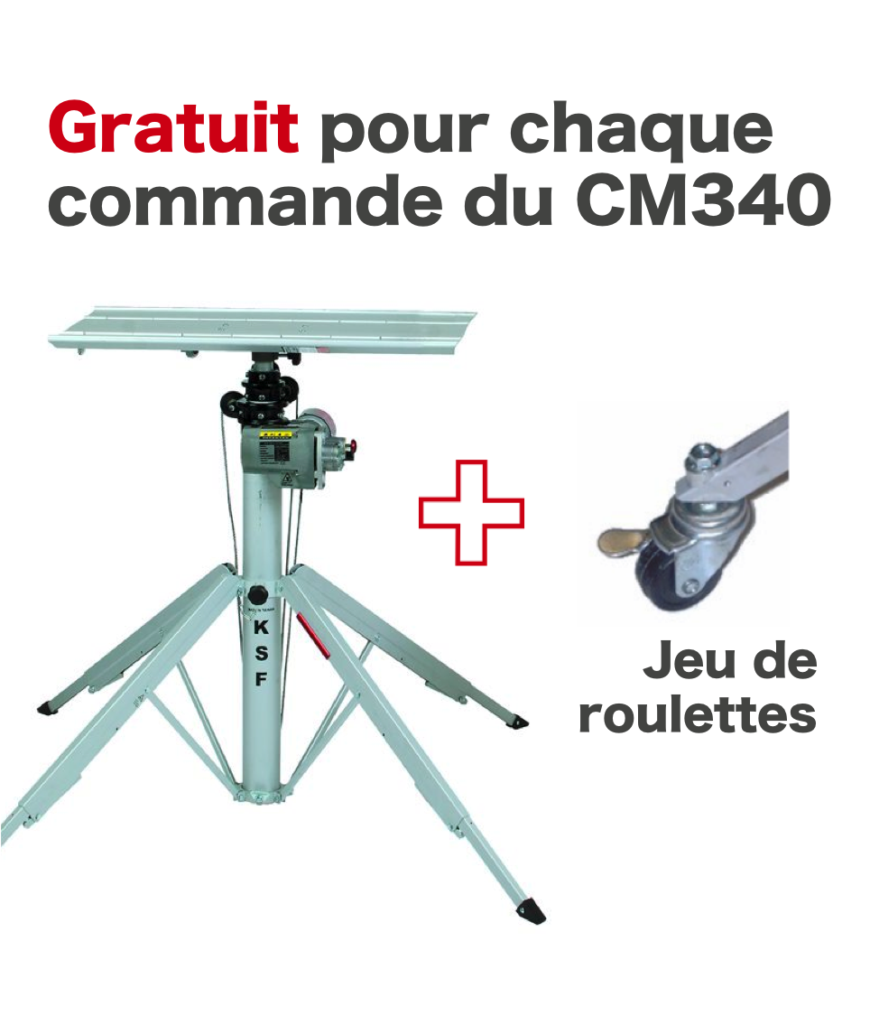 Beim Kauf des CM-340 erhalten Sie das Radsatz-Set für den Hebelift CM-340 kostenlos! Damit erhöhen Sie die Mobilität Ihres CM-340 und machen das Gerät flexibel einsetzbar. Wählen Sie einfach die Variante „Basiseinheit + Radsatz“ oben rechts in der Auswahl aus.