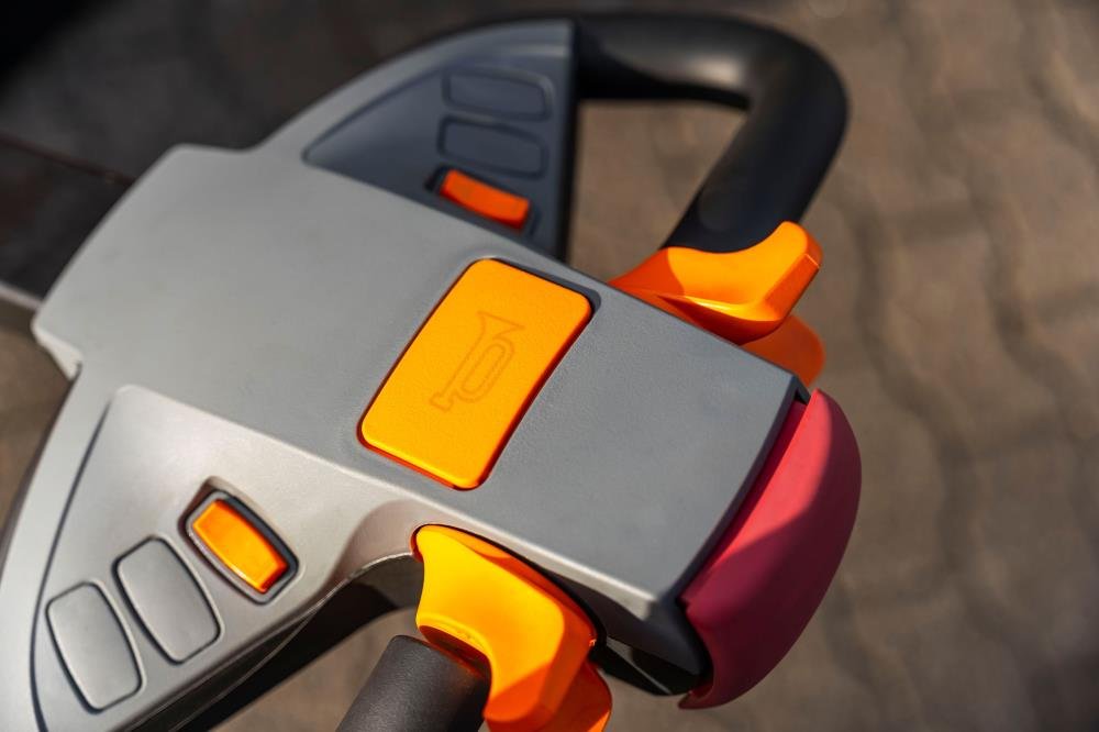 Dank der integrierten Leistungsregelung arbeitet der Hubwagen besonders leise. Ein 2-Wege-Elektroventil unterstützt das Heben und Senken schwerer Lasten. Drei Hub- und Senkgeschwindigkeiten können gewählt werden. Die CURTIS-Steuerung sorgt für noch effizienteres Arbeiten.