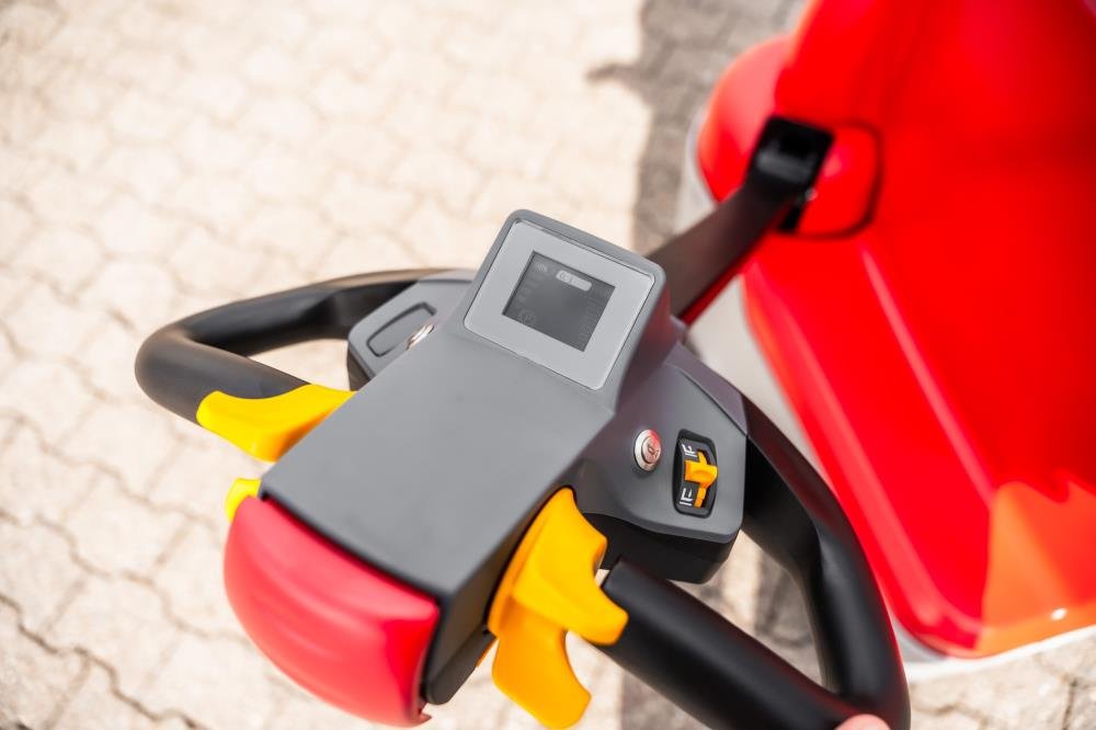 Sichere und ergonomische Nutzung: Ihre Sicherheit und Ihr Komfort haben für uns oberste Priorität. Unser COMPARTEC-Stapler ist mit ergonomischen Bedienelementen ausgestattet, die eine intuitive Handhabung ermöglichen. Der komfortable Lenkradgriff sorgt für angenehme Bedienung und minimiert die Ermüdung Ihrer Mitarbeiter, während die zuverlässige Bremse und die stabile Konstruktion ein sicheres Arbeitsumfeld gewährleisten. Der ergonomische Lenkradgriff ermöglicht die einfache Steuerung aller Hub- und Senkfunktionen über die Multifunktionstaste am Griff. Alle wichtigen Steuerungstasten und Anzeigen, wie Batteriestandanzeige und Betriebsstundenzähler, sind zentral im direkten Sichtfeld des Bedieners platziert.