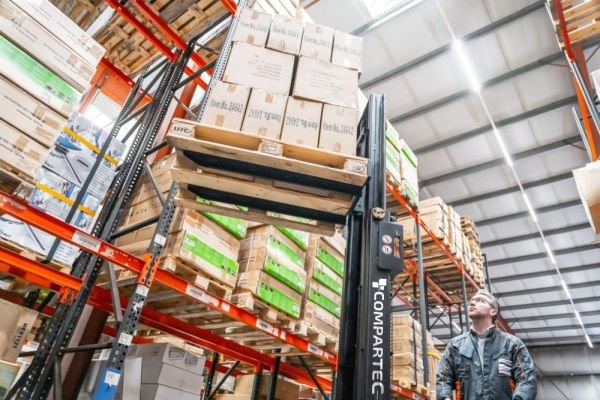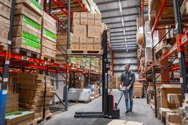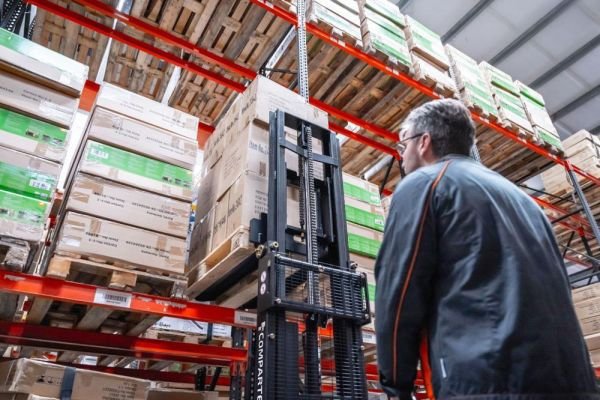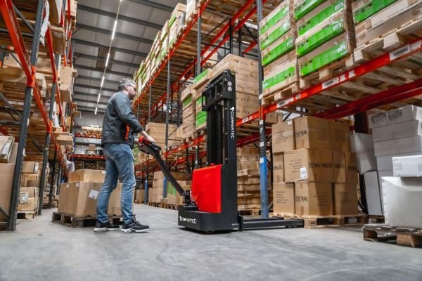 Der Hochhub-Elektrostapler EST122 von Compartec überzeugt durch seinen robusten Rahmen, einen stabilen Mast für alle Hubvorgänge, einfache Bedienung und ein effizientes Hydrauliksystem. Der Hochhubwagen bewältigt Lasten bis 1200 kg bei einer Hubhöhe von bis zu 2700 mm und eignet sich für den täglichen Einsatz.