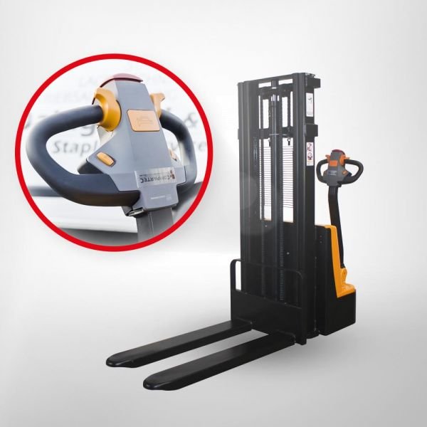 Der elektrische Stapler HME 1000/1600 ist ideal für den Transport palettierter Waren in Lagerhäusern, Produktionsstätten und Regalsystemen. Mit einer Tragfähigkeit von 1000 kg und einer Hubhöhe von 1600 mm deckt der elektrische Stapler denselben Aufgabenbereich wie ein Gabelstapler ab. Die fußgängerbediente Einheit erleichtert das Aufnehmen, Bewegen und Ablegen der Lasten, selbst auf höheren Regalebenen.