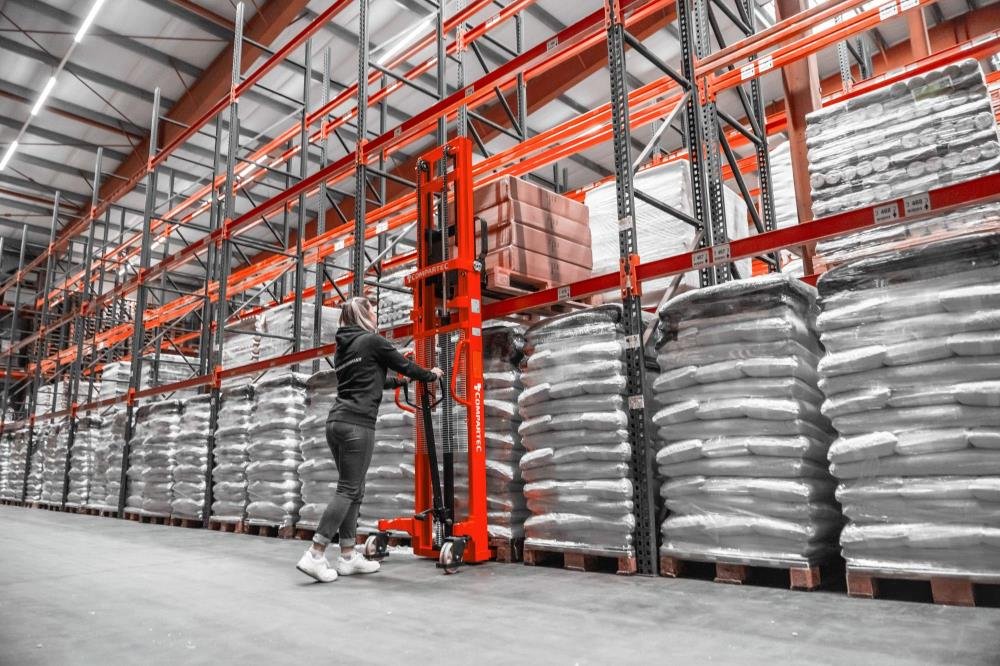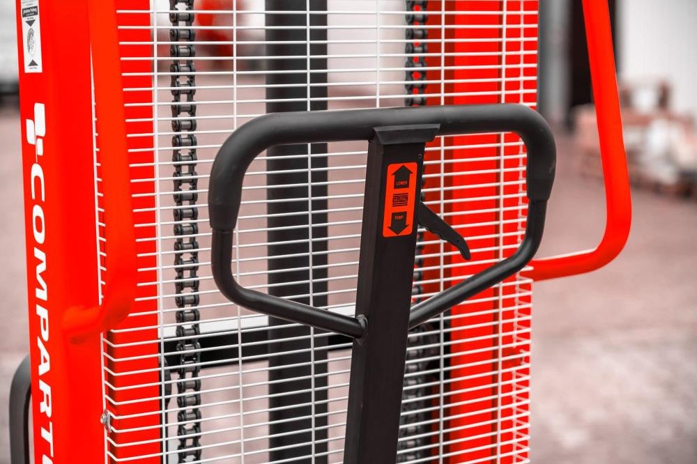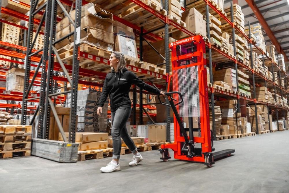 Der manuelle Hubwagen XL von Compartec eignet sich ideal für den Transport palettierter Waren in Lagern, Betrieben und Regalsystemen. Mit einer Tragfähigkeit von 1000 kg und einer maximalen Hubhöhe von 3000 mm übernimmt der Hubwagen Aufgaben, die ansonsten einem Gabelstapler vorbehalten wären. Das Gerät mit Fahrerbegleitung erleichtert das Aufnehmen, Bewegen und Absetzen von Lasten, selbst auf höheren Regalböden.