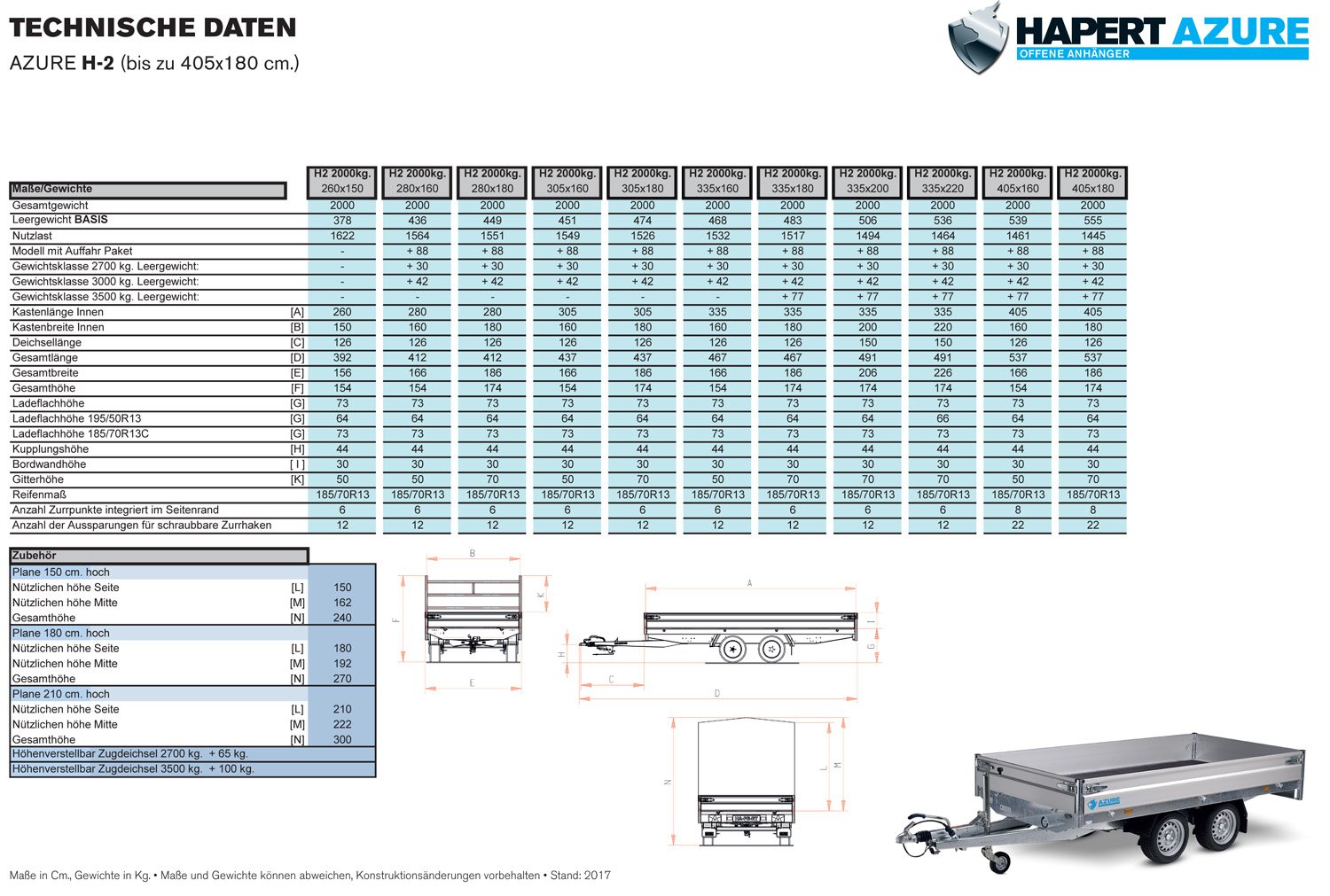 Hapert Azure H-2 – 2700 – 3350 x 1800 Bereifung 185 R 14 C