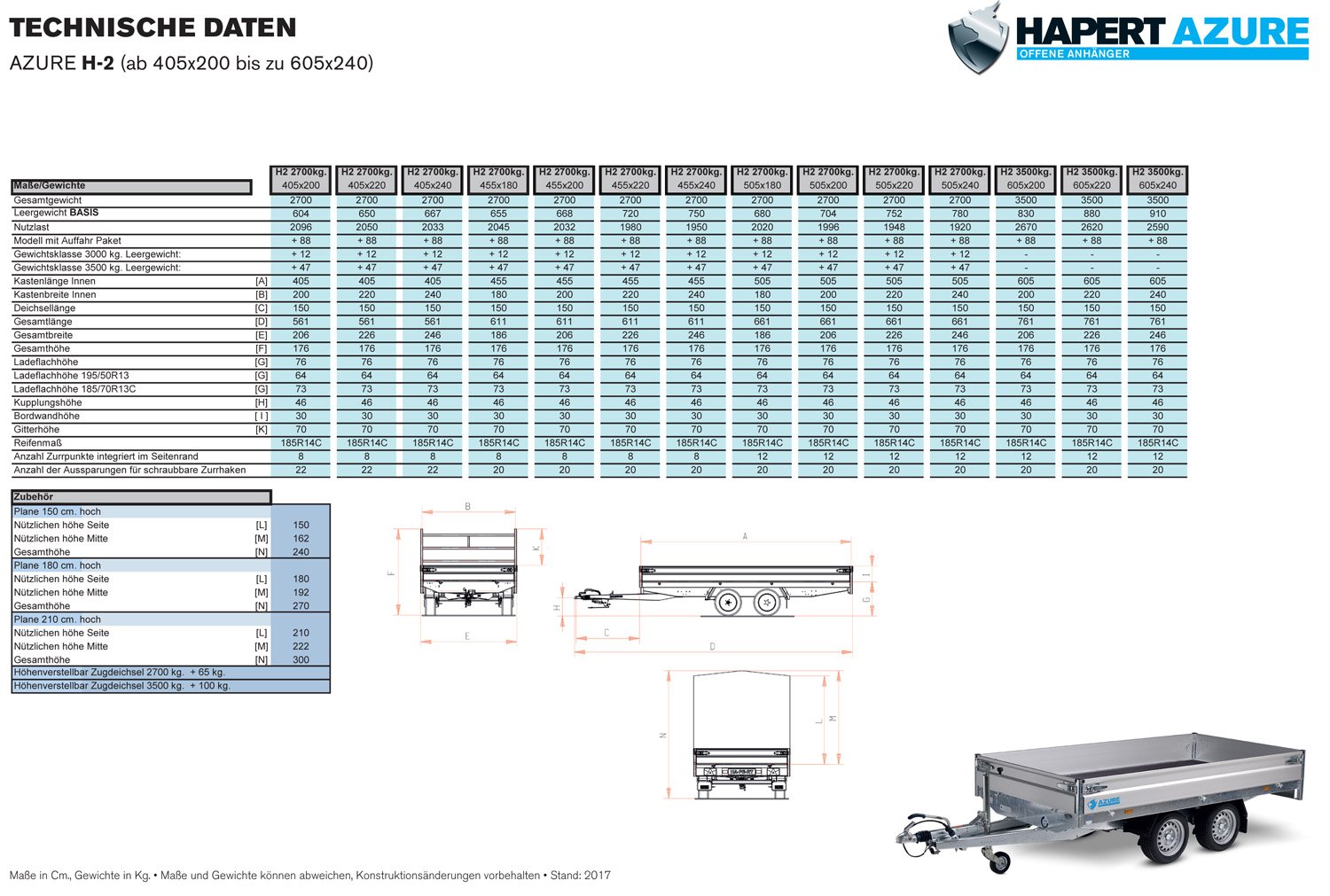 Der Hapert Azure H-2 – 2700 – 5050 x 1800 ist eine stabile Transportlösung mit großzügiger Ladefläche und praktischer Ausstattung für vielseitige Einsätze.