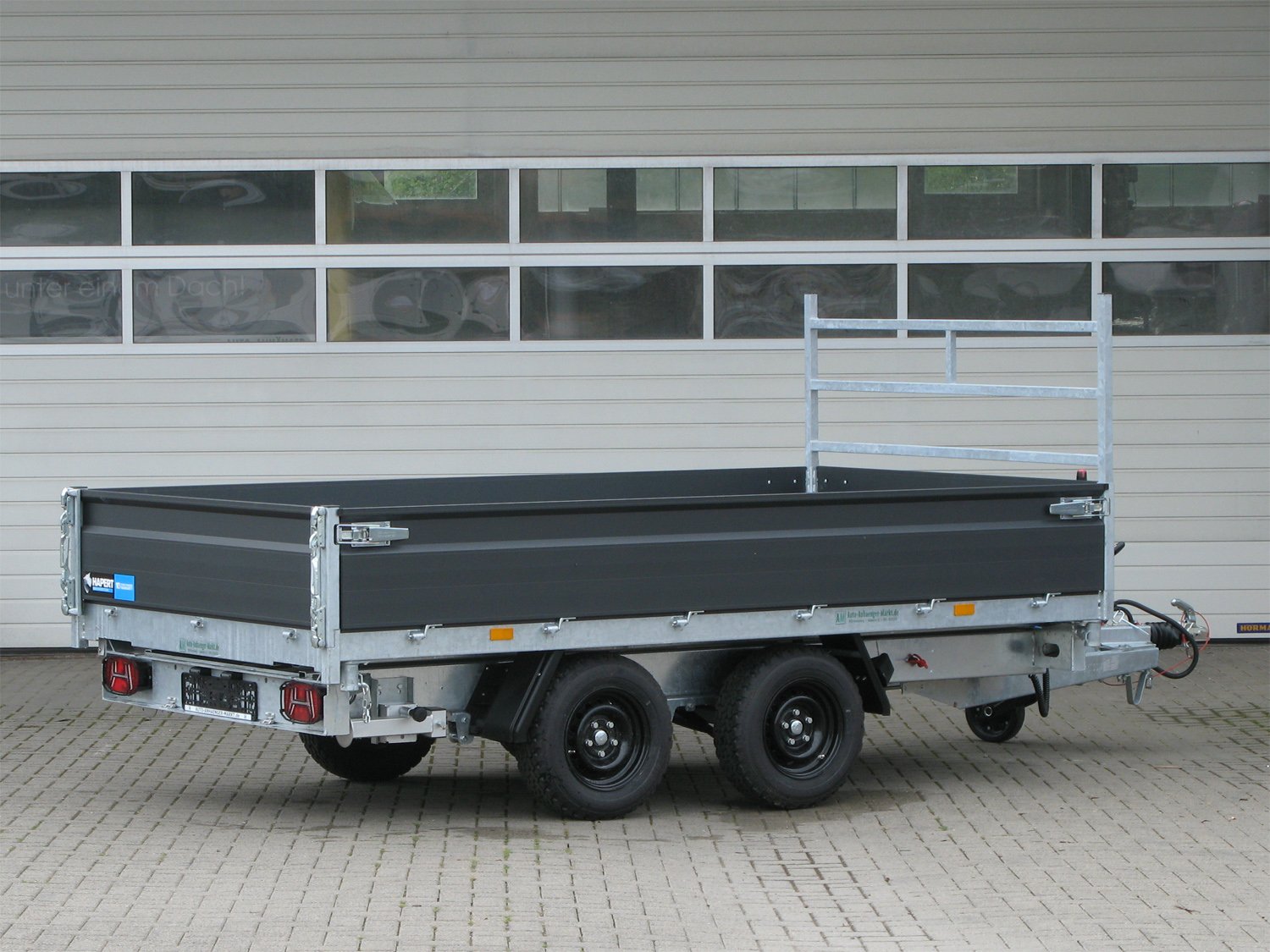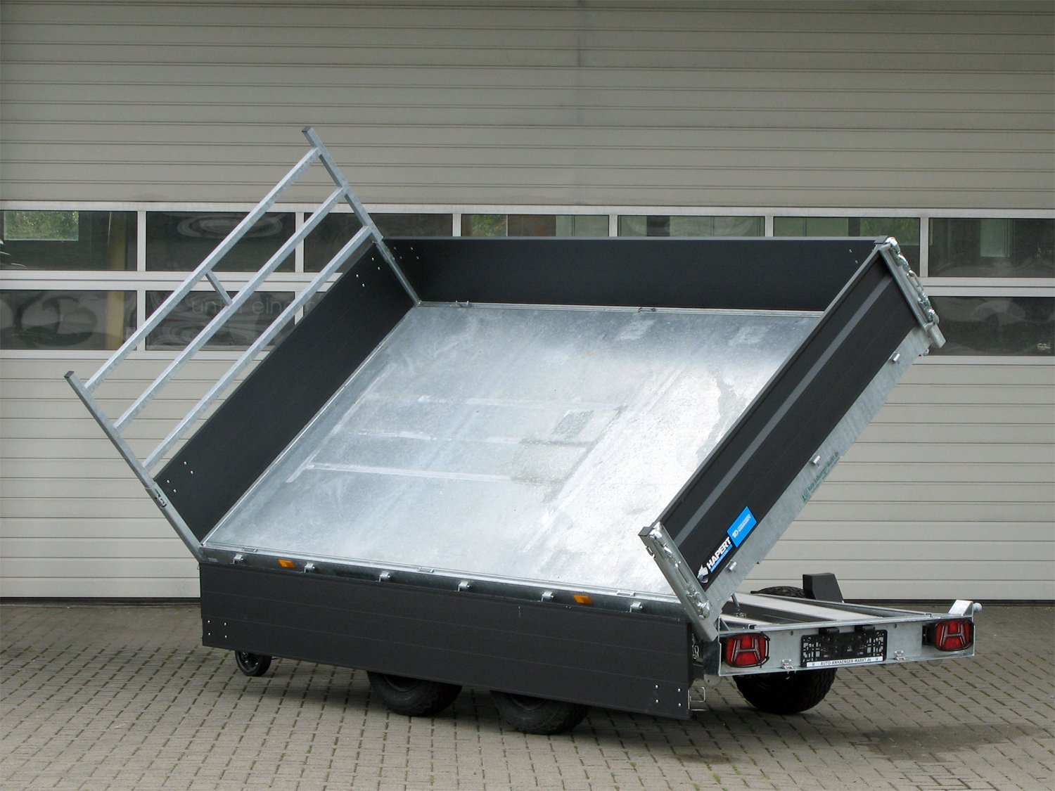 Das Hapert Cobalt Plus 3500 ist das neue Facelift-Modell 2024 mit überarbeiteten Rückleuchten und Stützradhalterung. Es verfügt über eine Parabelfederung inklusive Achsstoßdämpfern sowie ein komplett geschweißtes und vollbadverzinktes Fahrgestell für maximale Stabilität. Der solide, 5-stufige Hydraulikzylinder wird elektrisch bedient und hat eine zusätzliche Not-Handpumpe. Der Boden besteht aus 3 mm dickem, vollbadverzinktem Stahl. Das TÜV-geprüfte Ladungssicherungssystem gewährleistet eine sichere Beförderung. Weitere Ausstattung umfasst vier herausnehmbare Eckrungen, stabile Aluminium-Bordwände (40 cm hoch, anthrazitgrau) mit robusten Verschlüssen sowie ein verstärktes Unterfahrgestell. Die verstärkten Aluminium-Auffahrschienen (250 cm) sind unter dem Boden integriert und verfügen über ein U-Profil an der Heckseite. Zudem sind LED-Leuchten mit Schutzabdeckung, ein verstärktes Frontgitter (Cobalt Plus-Ausführung) sowie ein separates Batterieladegerät im Lieferumfang enthalten.