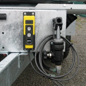 Der Humbaur HTK 3000.31 STAHL PROFI ist ein robuster Dreiseitenkipper mit einer Stahlbordwand und einem 600 mm hohen pendelbaren Stahlgitteraufsatz, der abnehmbar ist. Das Auffahrpaket umfasst hochwertige Aluminiumrampen (2.650 mm lang, 350 mm breit) sowie stabile Kurbelstützen. Sein Fahrwerk, der Rahmen und die Kippbrücke sind tauchbadverzinkt und gewährleisten höchste Stabilität und Haltbarkeit. Die aus einem Stück gefertigte Stahl-Kippbrücke sorgt für zusätzliche Robustheit. Sechs im Brückenboden montierte Anbinderinge (je 800 kg Zugkraft) bieten eine sichere Ladungssicherung. Die hintere Klappe ist pendelbar für eine flexible Nutzung. Ein hochwertiger, hartverchromter 4-stufiger Qualitäts-Kippzylinder sowie eine leistungsstarke Hydraulikeinheit garantieren eine zuverlässige Kippfunktion. Der vormontierte Bohlenschacht dient als Vorbereitung für Alubohlen. Das Modell ist mit einer Elektro- und Handpumpe verfügbar, und der Kippwinkel beträgt ca. 45° nach hinten und seitlich.