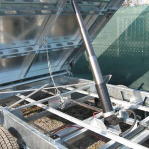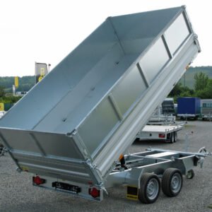 Der Humbaur HTK 3500.41 ALU Tridem ist ein robuster Dreiseitenkipper mit Aluminium-Bordwänden und drei Achsen für eine optimale Stabilität. Ausgestattet mit einer Bereifung von 195/50 R13 C, bietet er eine hohe Belastbarkeit und Fahrkomfort. Besondere Merkmale umfassen den 600 mm hohen Gitteraufsatz sowie das tauchbadverzinkte Fahrwerk, den Rahmen und die Kippbrücke aus einem Stück Stahl für maximale Langlebigkeit. Er verfügt über acht im Brückenboden montierte Anbinderinge (je 800 kg Zugkraft), eine hochwertige Hydraulikeinheit und einen hartverchromten 4-stufigen Qualitäts-Kippzylinder. Die Heckklappe ist pendelbar, und der Bohlenschacht ist vormontiert und vorbereitet für Alubohlen. Mit Elektro- und Handpumpe ausgestattet, bietet das Modell einen Kippwinkel von ca. 45° nach hinten und seitlich.