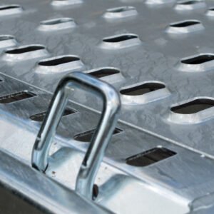 - Kippbrücke: Geschweißt, feuerverzinkt, mechanisch kippbar mit Gasdruckfeder (10° Auffahrwinkel)