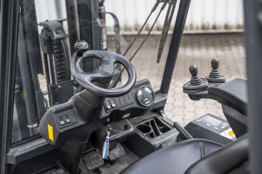 Die Fahrerkabine ist geräumig gestaltet, um die Ergonomie zu optimieren. Der Arbeitsplatz ermöglicht ein komfortables Sitzen, sodass der Fahrer bei der Arbeit nicht ermüdet. Die große Sichtfläche erlaubt es dem Fahrer, die Last stets im Blick zu behalten.