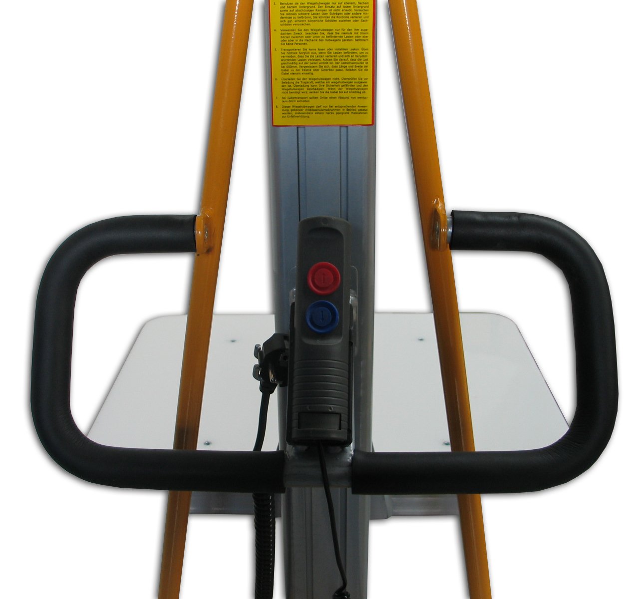 Die Hub- und Senkfunktion kann bequem vom Arbeitsbereich aus über die Kabel-Fernbedienung gesteuert werden. Vier PU-Rollen ermöglichen einen leisen und einfachen Transport. Die an beiden Seiten angebrachten Feststellbremsen sorgen für sicheren Stand. Der Ladezustand der Batterie lässt sich über LED-Anzeigen ablesen. Die Gel-Batterie kann über das integrierte Ladegerät an jeder Steckdose geladen werden.