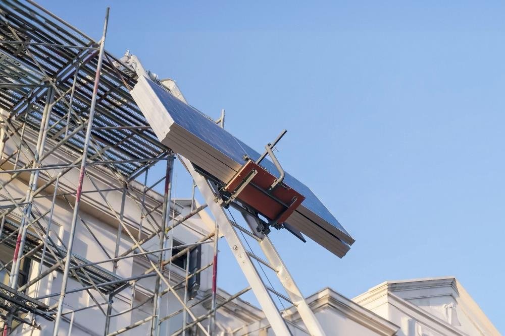 Der SolarClimber ist ein speziell entwickelter Baustellenaufzug für den Transport von Solarmodulen und PV-Modulen auf das Dach. Er ermöglicht das mühelose und sichere Heben von Solarmodulen unterschiedlicher Größe auf das Dach oder auf andere höhere Ebenen. Egal, ob schwere Photovoltaikmodule oder sperrige Solarmodule – der „SolarClimber“ erledigt die Aufgabe präzise und zuverlässig.