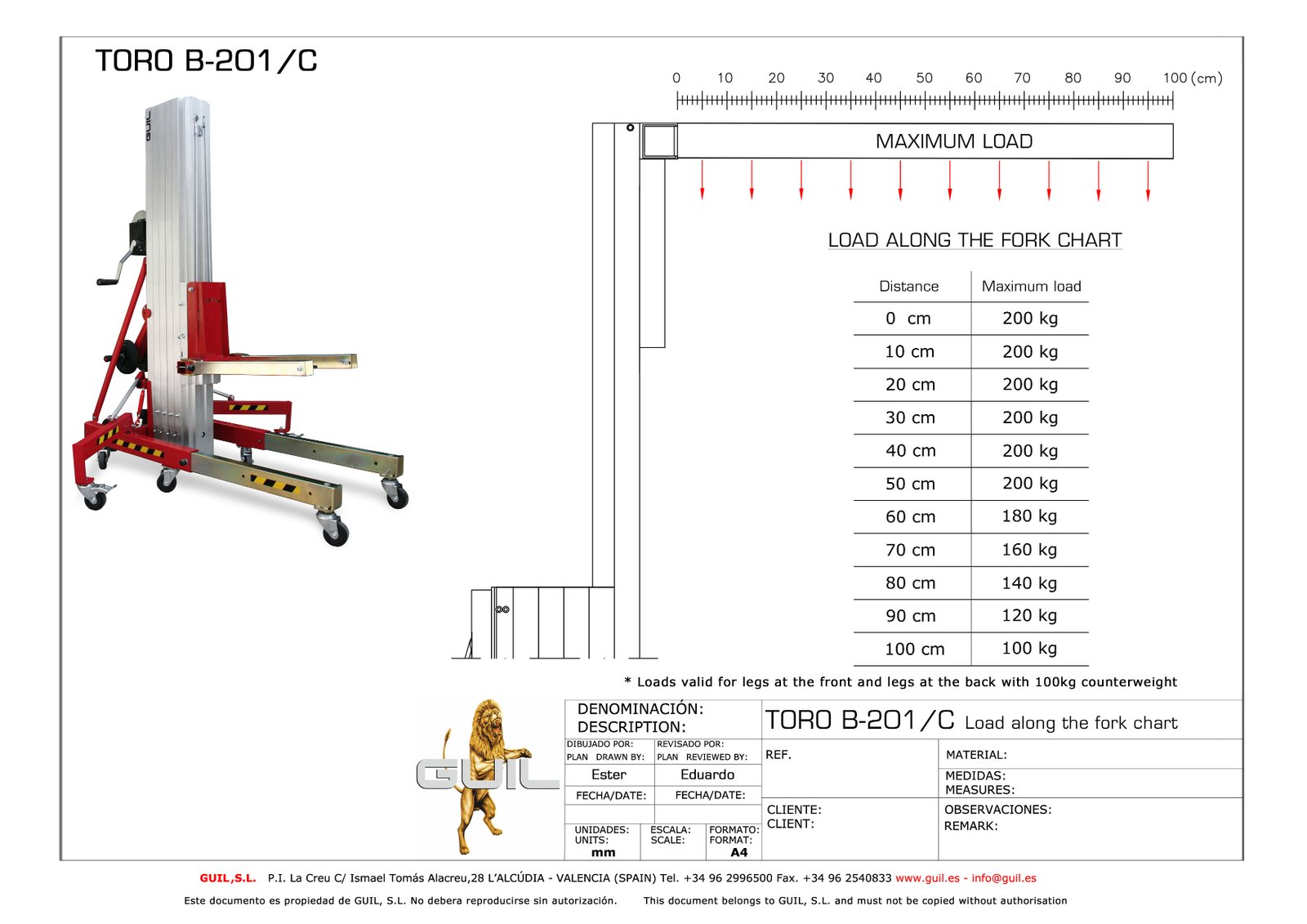 Der GUIL Toro B-Materialaufzug hebt Lasten bis zu 250 kg auf eine Hubhöhe von bis zu 6300 mm (modellabhängig). Das Gerät ist mit Hubhöhen von 4000 mm, 5150 mm und 6300 mm erhältlich. Mit diesem Materialaufzug können Sie beispielsweise Klimaanlagen, Lüftungssysteme, Solarpaneele, Jalousien oder Stahlträger mühelos auf große Höhen transportieren. Dieser Aufzug ist ebenfalls ideal für Wartungsarbeiten an Geräten, z. B. in Lagerhäusern, Flughäfen, Hotels usw.