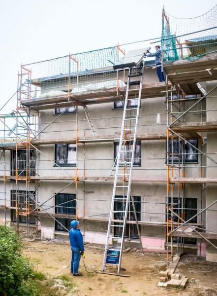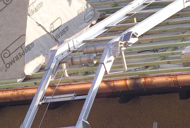 Der schräg aufgestellte Bauaufzug „Top Lift Standard“ ist somit die ideale Lösung für die Bau- und Dachbranche sowie für Solartechnik-Anwendungen.