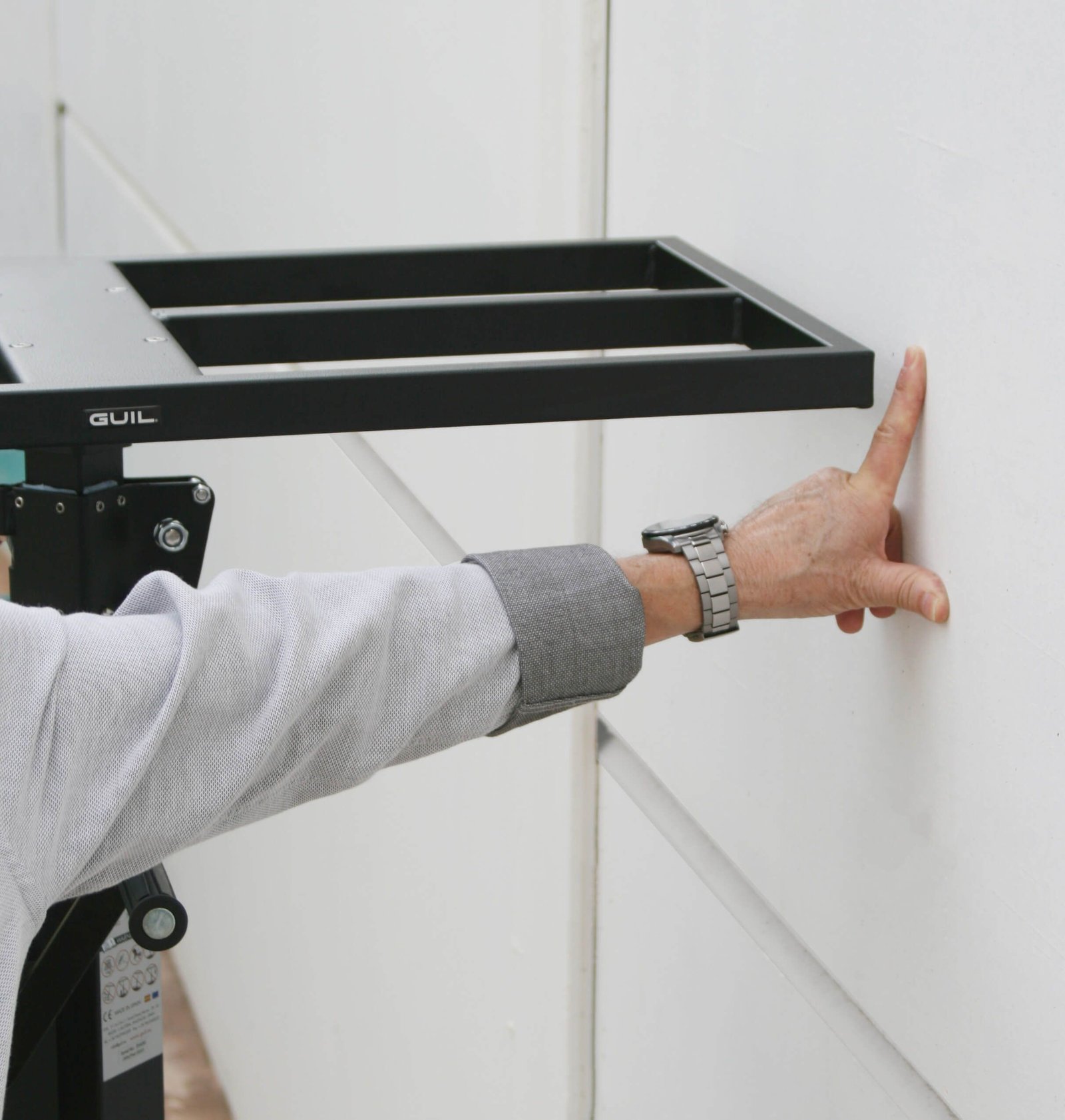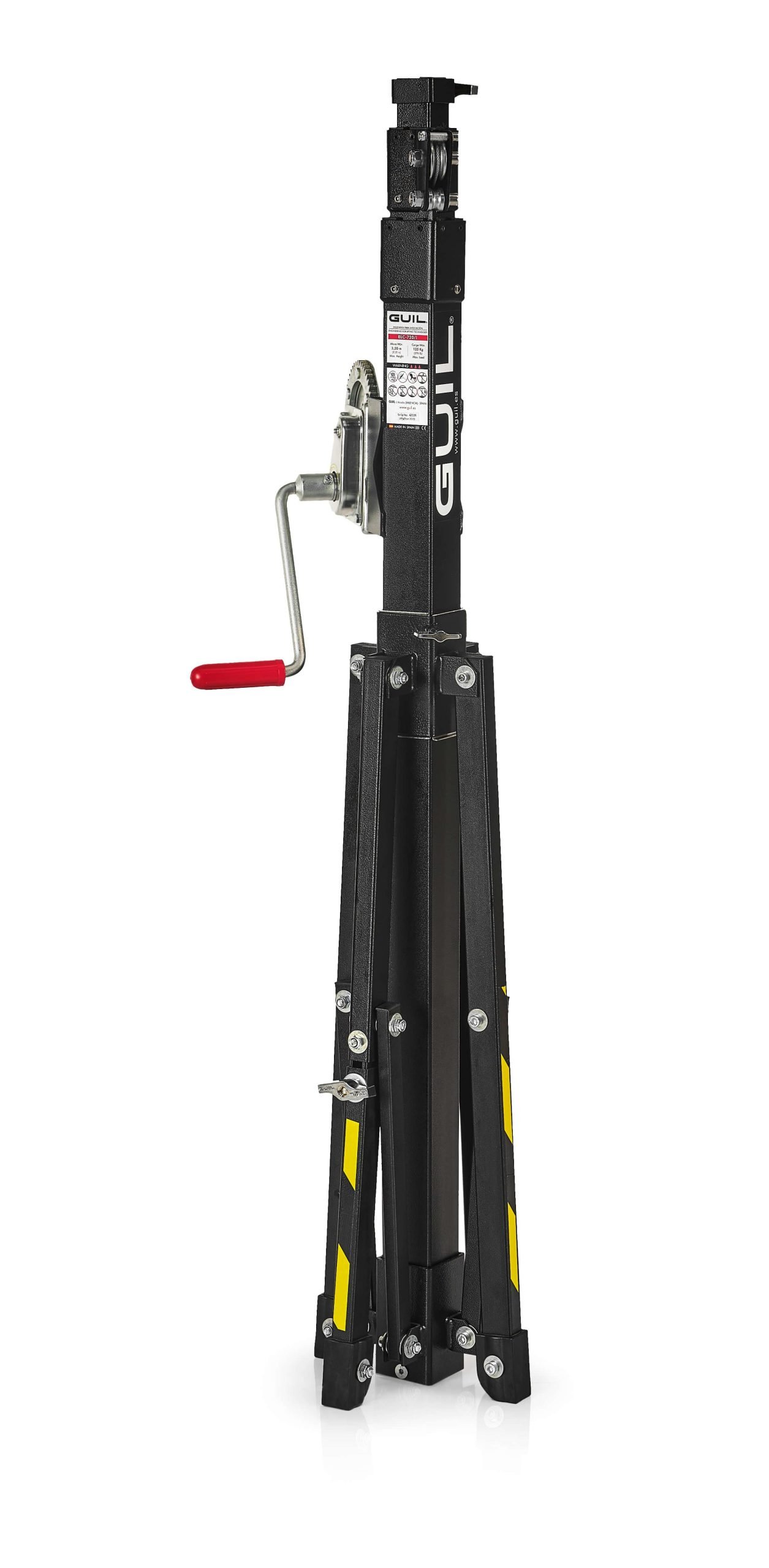 Für den ELC-720/I bieten wir bei Bedarf die GUIL Markisenhalterung BC-08/M an. Sie ist längenverstellbar von 72,5 cm bis 110 cm und eignet sich zum Heben von Markisen und Rollläden. Die auf dem Bild gezeigte Plattform ist separat erhältlich und nicht im Lieferumfang enthalten. Außerdem kann das Rollenset für das Gerät separat erworben werden.