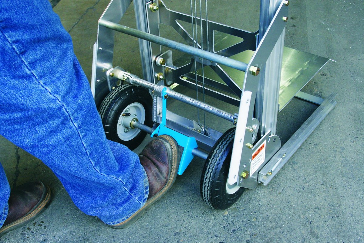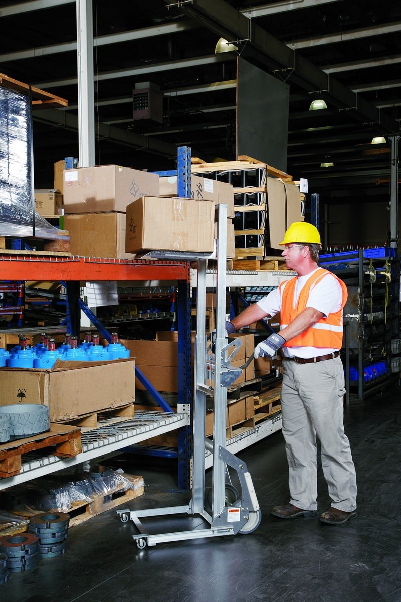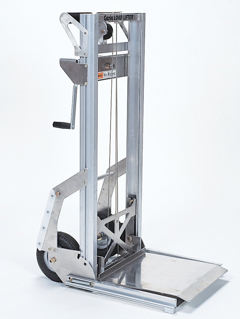 Der Genie LL Materialaufzug ist die ideale Hilfe, wenn Sie schwere Lasten vom Regal rückenschonend heben möchten. Das Gerät ist kompakt gebaut und hat ein geringes Eigengewicht – die idealen Voraussetzungen für das Handling von Lasten bis zu 91 kg. Mit einer einstellbaren Winde können Sie Ihre Lasten sicher bis zu einer Arbeitshöhe von 1770 mm heben. Die Fußbremse verhindert ein unkontrolliertes Rollen des Geräts.