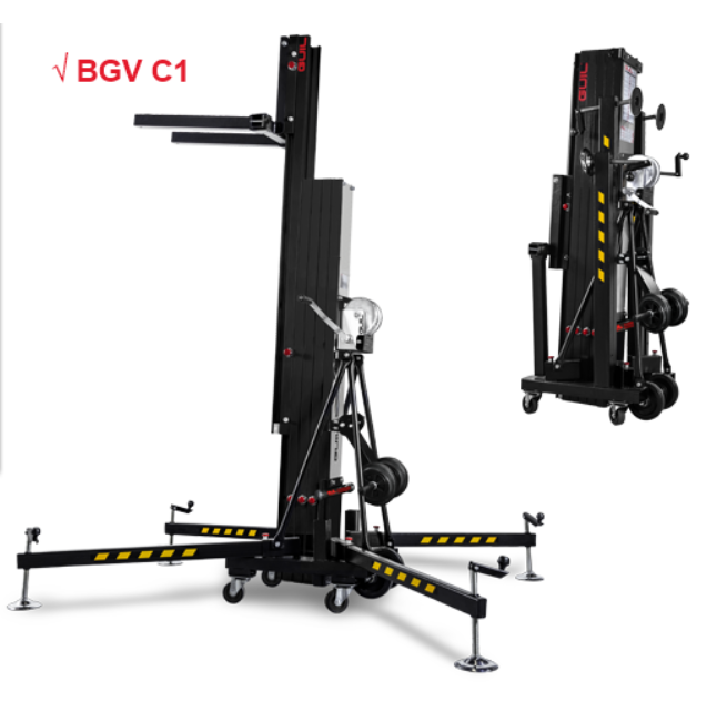 Mit den Hubständern der Serien ULK 800 und 800 XL bietet GUIL einen hochwertigen Hubständer, der besonders für Montage- und Demontagearbeiten im Event- und Bühnenbereich geeignet ist. Vier lange Stabilisatoren verleihen den Hubständern die notwendige Stabilität, um Lasten aus dem Veranstaltungsbereich zu heben und in der Höhe zu halten. Verwenden Sie die Hubständer beispielsweise zum Aufstellen von Lautsprechern, Trägern, Monitoren, Plakaten, Bannern, Paneelen, Installationen oder Beleuchtung. Der Hubständer bietet zahlreiche Einsatzmöglichkeiten und kann individuell sowie rutschfest auf unebenen Flächen über zweistufige Schraubstöße mit gummierten Chrombuchstaben eingestellt werden. Eine integrierte Wasserwaage ermöglicht das Ausrichten der gesamten Konstruktion auf Bühnen, in Hallen, Auditorien und Veranstaltungsräumen. Mit den Modellen ULK 800 (280 kg) und 800 XL können Lasten bis zu 350 kg auf eine maximale Hubhöhe von 8000 mm gehoben werden.