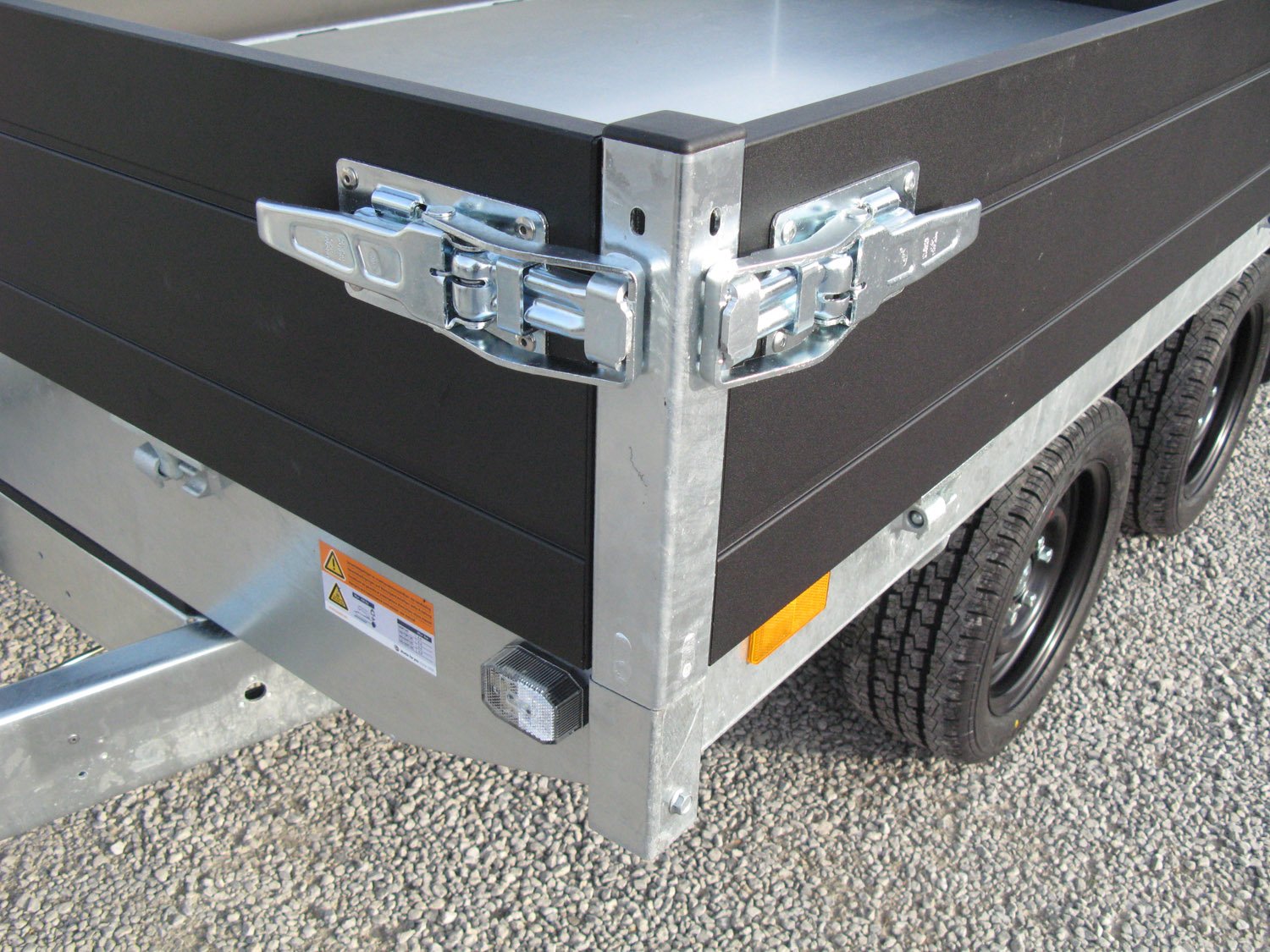 - Bordwände: Doppelwandige Aluminium-Konstruktion mit Spannverschlüssen (30 cm hoch)
