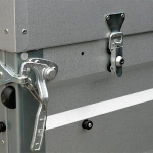 Die Bodenplatte ist aus wetterfestem finnischem Birkenholz gefertigt, 15 mm dick, UV-beständig und vollständig unterstützt sowie im Rahmen eingeschlossen. Für zusätzliche Sicherheit sorgt der selbstsichernde Verschluss sowie die integrierte Schiene für Ankerhaken. Der Anhänger ist mit einem Stützrad bei gebremsten Anhängern ausgestattet und verfügt über einen 13-poligen Stecker.
