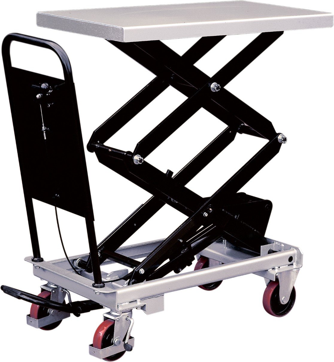 Ohne großen Kraftaufwand kann das Gerät mithilfe seiner Doppelscheren auf eine Höhe von 1410 mm bzw. 1585 mm angehoben werden. Der Hubtisch lässt sich durch Betätigen des Pedals komfortabel anheben und kann mithilfe eines Hebels am Steuergriff kontrolliert abgesenkt werden. Dadurch können alle erforderlichen Tätigkeiten mühelos im Stehen ausgeführt werden, ohne dass Waren vom Boden gehoben werden müssen, was den Rücken belastet. Je nach Modell kann der Scherenhubtisch Lasten von bis zu 800 kg heben. Die Arbeitsgeräte können in vielen bereichsunabhängigen Einsatzgebieten verwendet werden, wie z. B. in Lagern, Werkstätten oder in der Produktion.