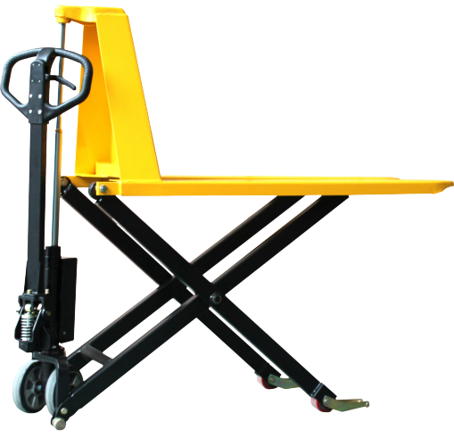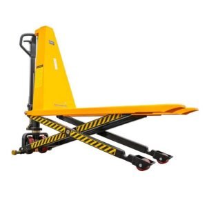 Wie ein Hubwagen kann der Scherenhubwagen Paletten über die Gabeln aufnehmen und transportieren. Dadurch lassen sich schwer zu bewegende palettierte Waren effizient innerhalb der internen Logistik handhaben. Das Gerät unterstützt zudem beim Be- und Entladen von Lasten. Durch die Hubhöhenverstellung bis 800 mm können beladene Paletten auf eine ergonomische Arbeitshöhe gebracht werden.