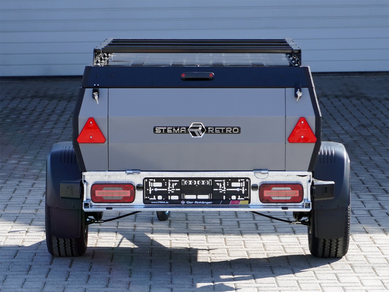 - Inklusive Garagenständer zum platzsparenden Aufstellen des Anhängers