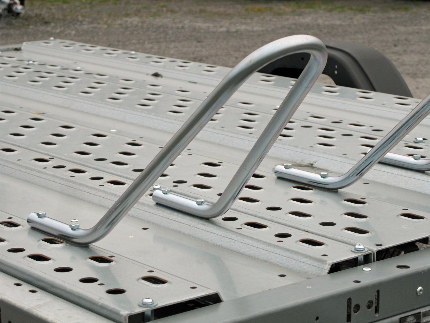 - Stabile Radbügel für sicheren Stand der Motorräder