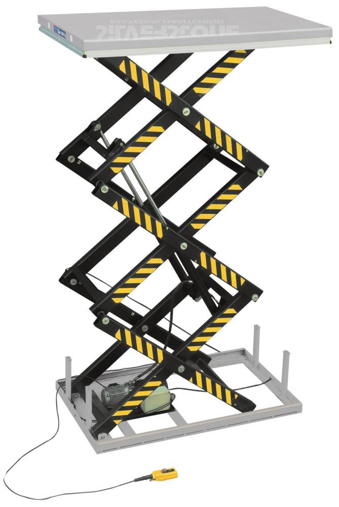 Der HT1000 von Silverstone ist ein stationärer Scherenhubtisch mit dreifachem Scherenpaket (3 Scherenpaare), der für den Transport von Gütern in große Höhen ausgelegt ist. Das Arbeitsgerät erreicht eine maximale Hubhöhe von 3000 mm bei einer Tragfähigkeit von 1000 kg. Im abgesenkten Zustand beträgt die Tischhöhe 450 mm. Die großzügige Plattformfläche von 1700 × 1000 mm ermöglicht komfortables Arbeiten. Mit dem HT1000 kann die Tischplatte auch als ergonomische, rückenschonende Arbeitstischfläche genutzt werden. Das Gerät verfügt über ein geräuscharmes Aggregat mit Überlastventil und erfüllt zudem die Norm EN1570-1.