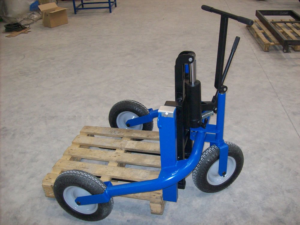 Ein Geländestapler ist eine spezielle Form des Hubwagens. Er ist darauf ausgelegt, schwere Lasten bis zu 500 kg auf unebenem Gelände zu heben und zu transportieren. Geländestapler eignen sich ideal für den Transport und die Handhabung von Paletten auf Schotter, Wiesen, Feldern und Höfen. Auch auf Baustellen, in der Landwirtschaft und generell auf unebenem Gelände sind diese manuellen Geländestapler eine leistungsstarke Transporthilfe.