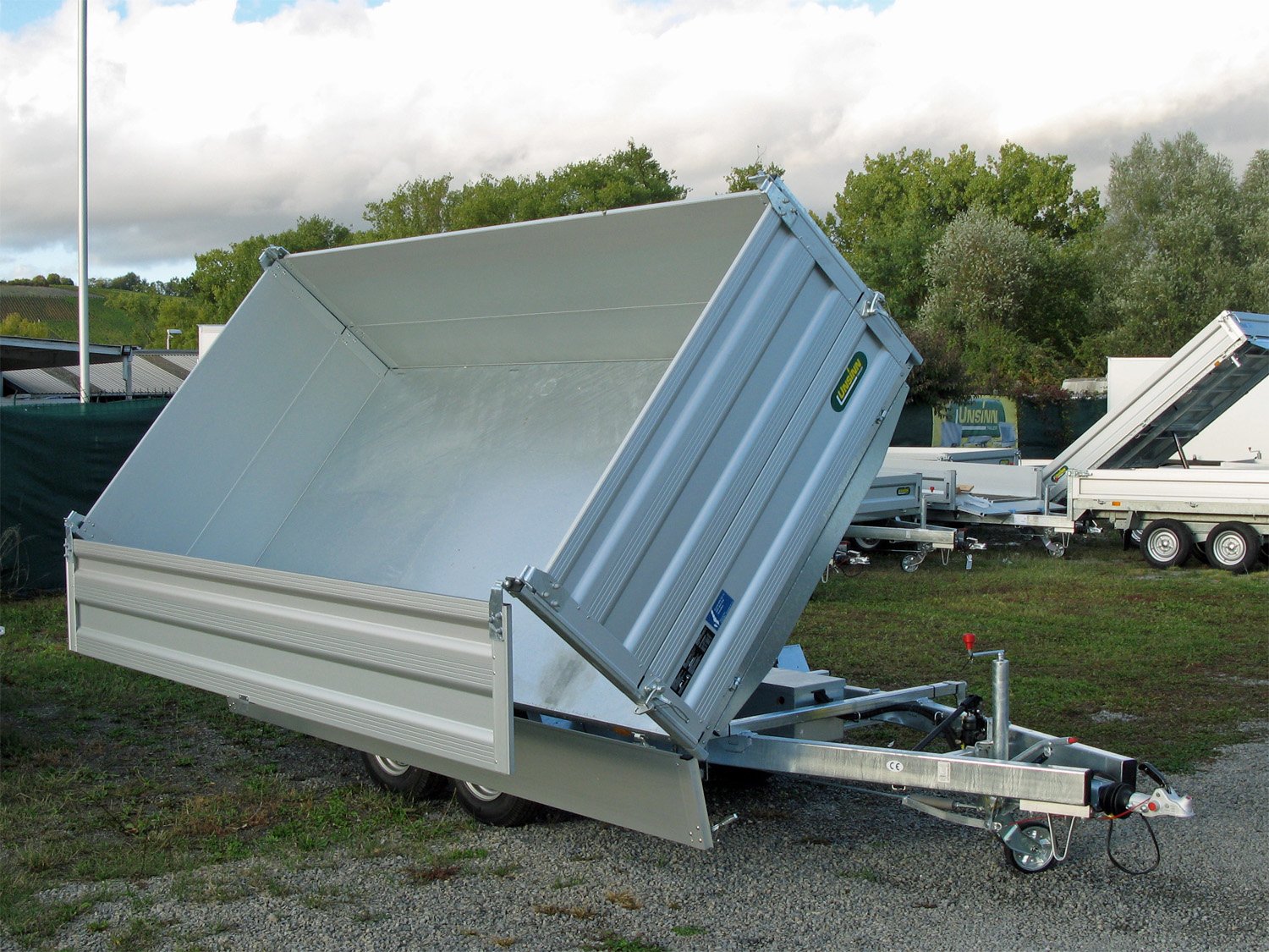 Der Unsinn UDK 3017-30-14 ist ein Sondermodell mit einem 550 mm hohen Unsinn Profil-Alubordwandaufsatz. Dieses Zubehör erhöht die Ladekapazität (zzgl. 82 kg Gewicht bei der Nutzlast zu beachten). Die hydraulische E-Pumpe wird von einer Batterie gespeist und verfügt über ein Ladegerät sowie eine Notpumpe „Pumpless“ für Akkuschrauber. Der klappbare Kennzeichenhalter ermöglicht die praktische Verstauung der Auffahrschienen unter der Ladefläche. Das verwindungssteife Längsträgerfahrgestell mit Hohlprofilkonstruktion ist verschweißt und vollständig im Tauchbad feuerverzinkt. Zudem ist die Halterung für Auffahrschienen bereits vorbereitet. Das verstärkte Automatikstützrad bietet eine Tragkraft von 500 kg, während das Spinlock-Ladungssicherungssystem mit 10 versenkten Zurrpins eine sichere Befestigung garantiert. Die Aluminium-Hohlprofil-Bordwände sind eloxiert, vierseitig abklappbar und mit Hakenverschlüssen versehen. Die Heckbordwand ist abklappbar und mit einer Stahlbeplankung ausgestattet. Vier steckbare Stahleckrungen sorgen für zusätzliche Belastbarkeit. Die Ladefläche besteht aus einem durchgängigen, gekanteten Stahlboden für maximale Stabilität. Zur weiteren Ausstattung gehören eine moderne Beleuchtung mit 13-poligem Stecker und Rückfahrscheinwerfer.