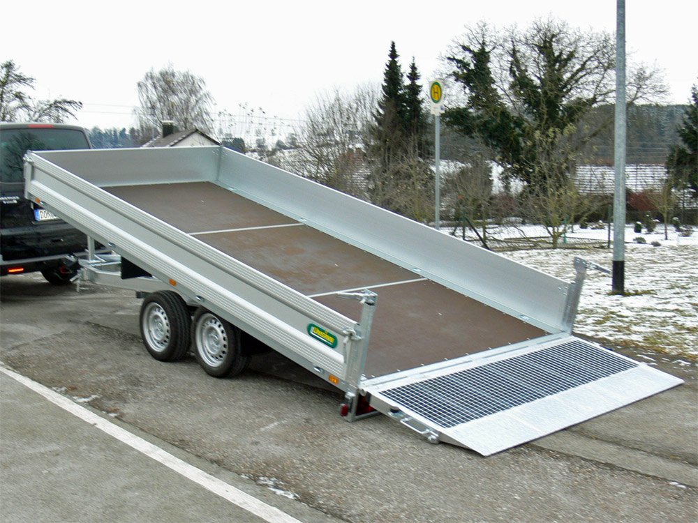 | Ladefläche | Mehrfach verleimte Siebdruckplatte, 18 mm, geteilt mit Stoß, rutschhemmend und wasserfest |