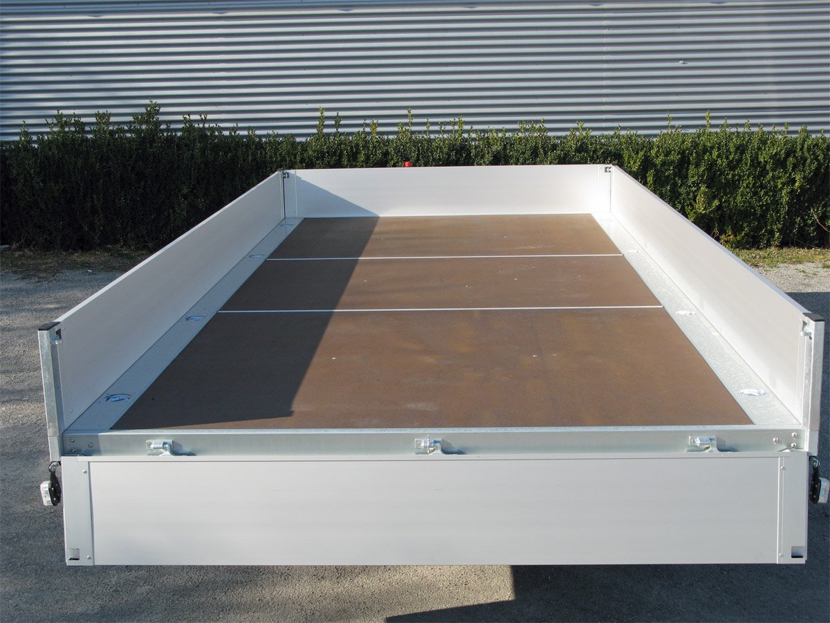 - Aluminium-Hohlprofil-Bordwände, eloxiert, vierseitig abklappbar und abnehmbar