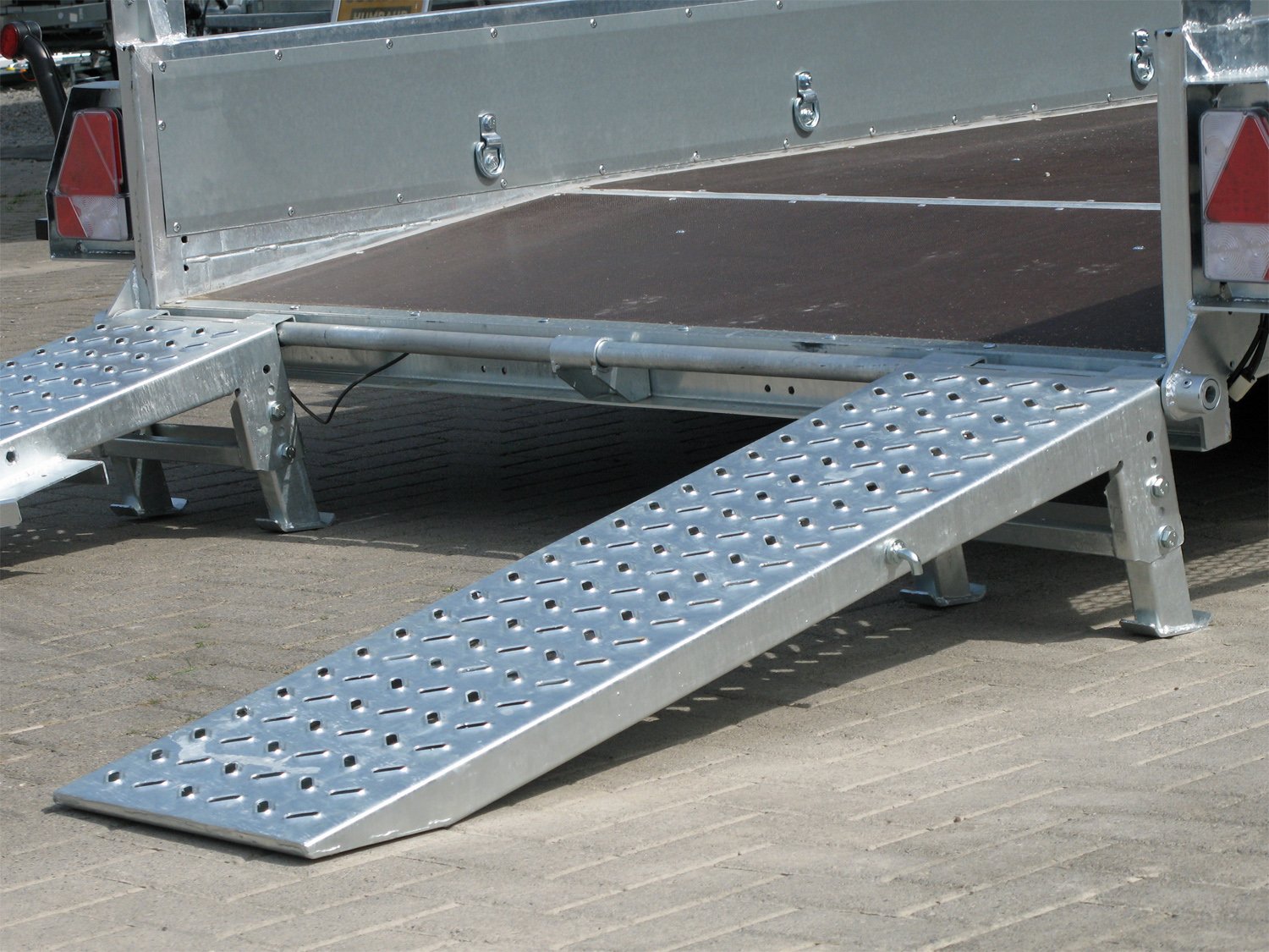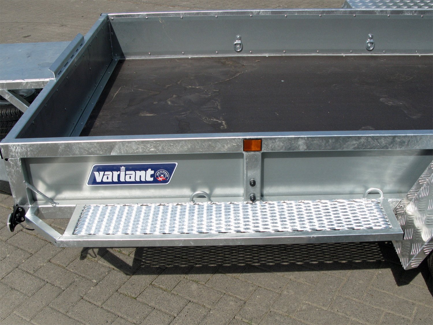 Der Variant 3516 B3 ist ein Maschinenanhänger mit extra niedriger Auffahrt. Dank des angewinkelten hinteren Endes (Beavertail) eignet er sich besonders für den Transport von Maschinen und Hebebühnen mit sehr geringer Bodenfreiheit.