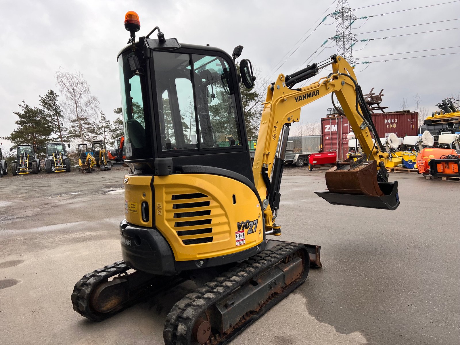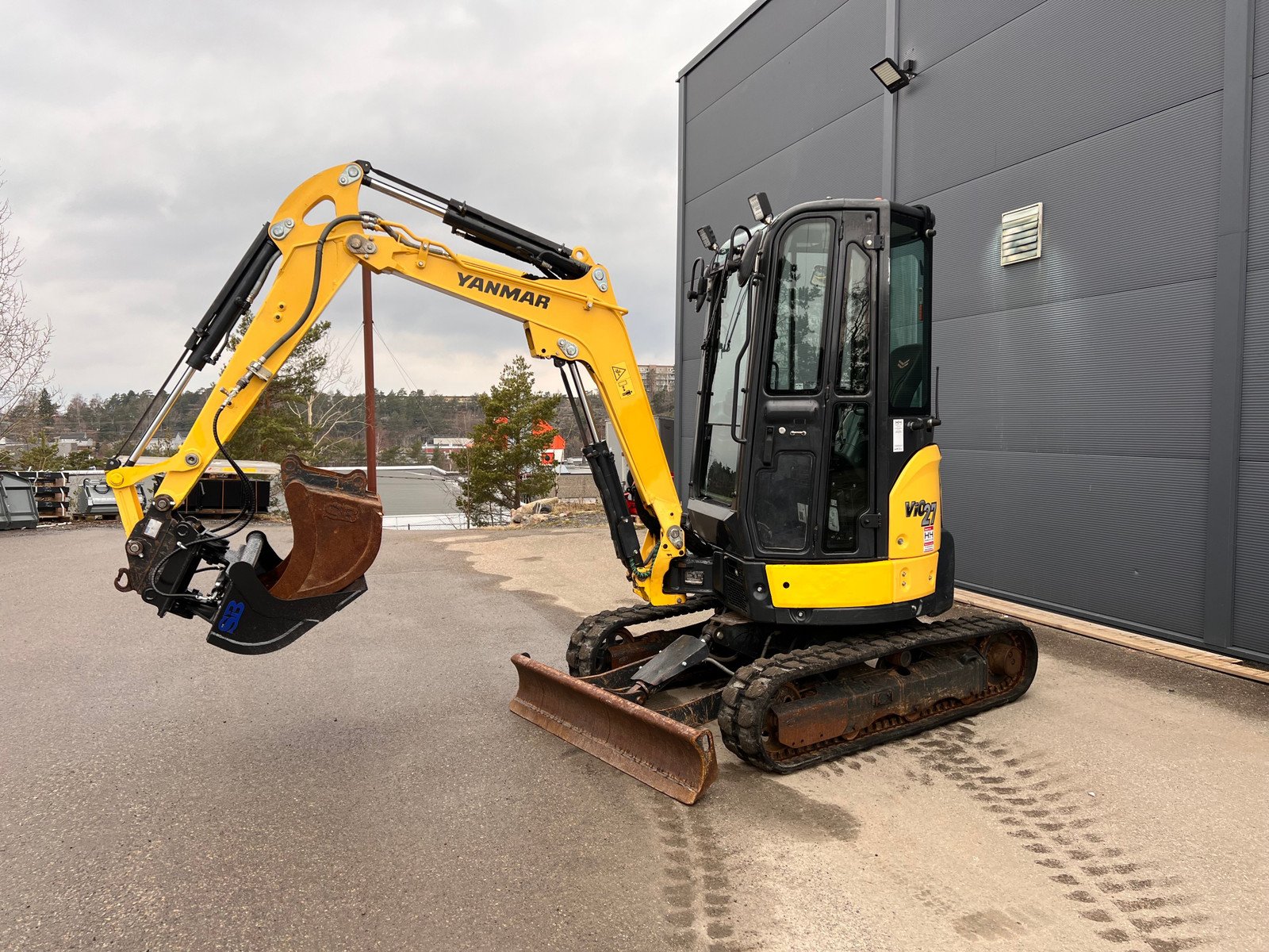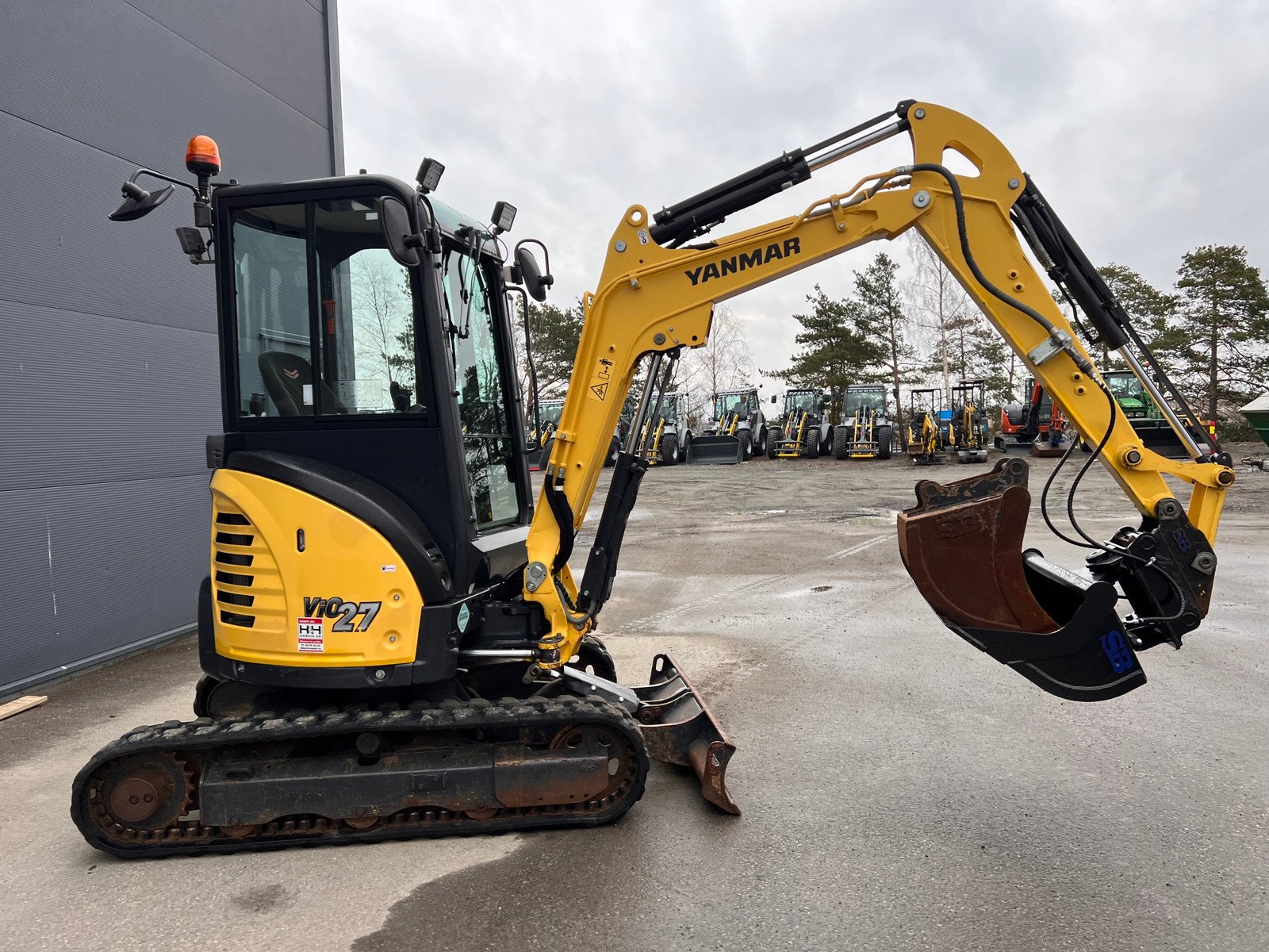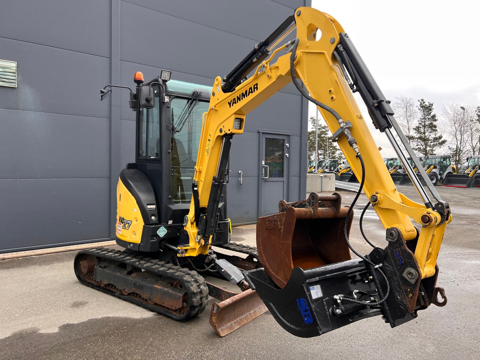 Gebrauchter Yanmar Vio27, verkauft mit einer neuen Planierplatte und einem gebrauchten Baggerlöffel.
